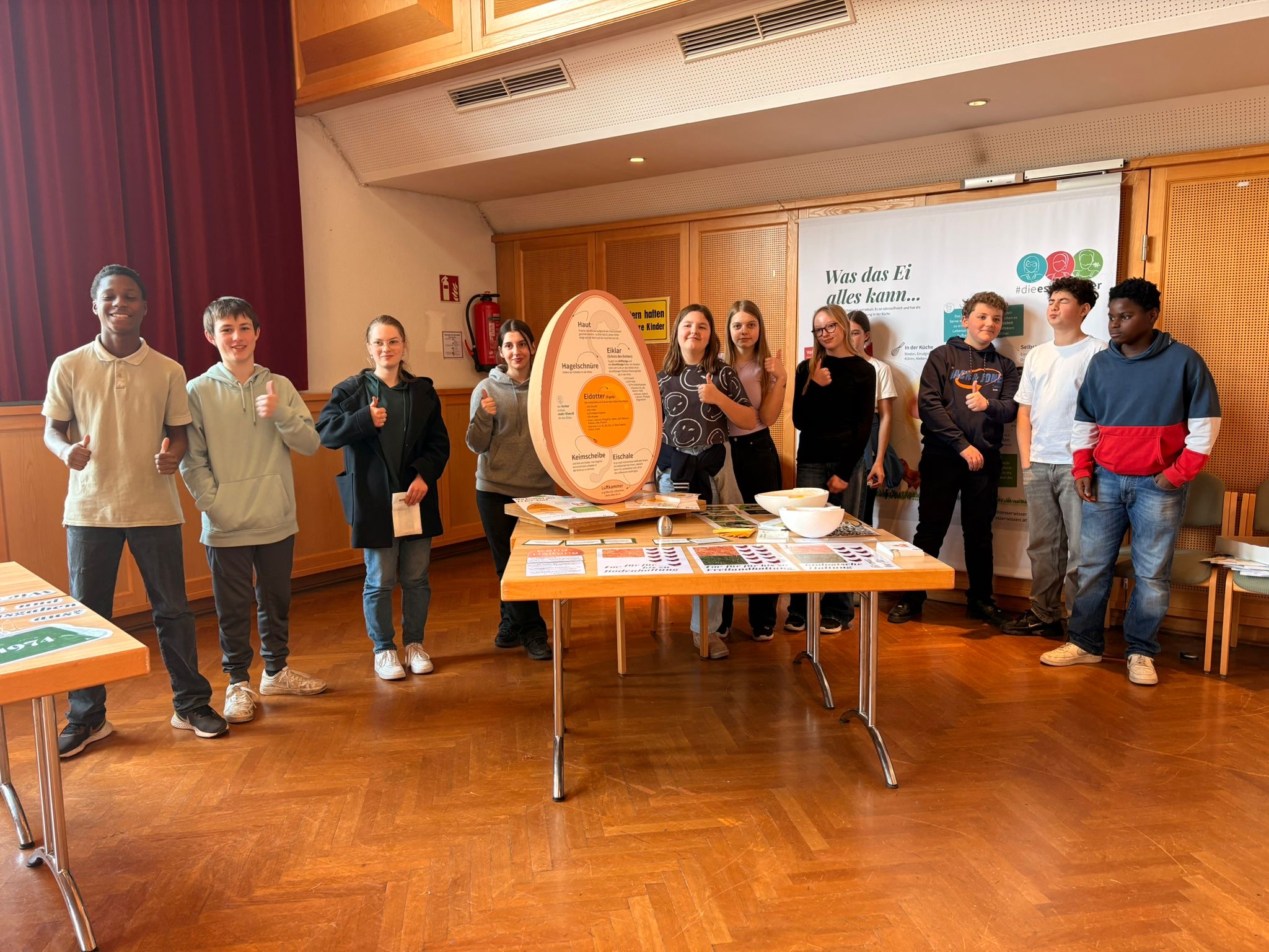 Mitte März fand in Buchkirchen die Ausstellung der „Esserwisser“ der Ortsbauernschaft Buchkirchen statt. Die Mittelschule besuchte mit ihren Klassen dieses Event im VZ Buchkirchen. Dabei wurden den Schüler*innen wichtige Inhalte zu den Themen Ernährung, regionale und saisonale Lebensmittel sowie deren korrekte Aufbewahrung nähergebracht. Auch die selbstständige Herstellung von Butter durch die Schüler*innen samt Verkostung auf Broten durfte nicht fehlen. Wir bedanken uns bei allen Beteiligten für die fundierten Ausführungen und die flexible Organisation!